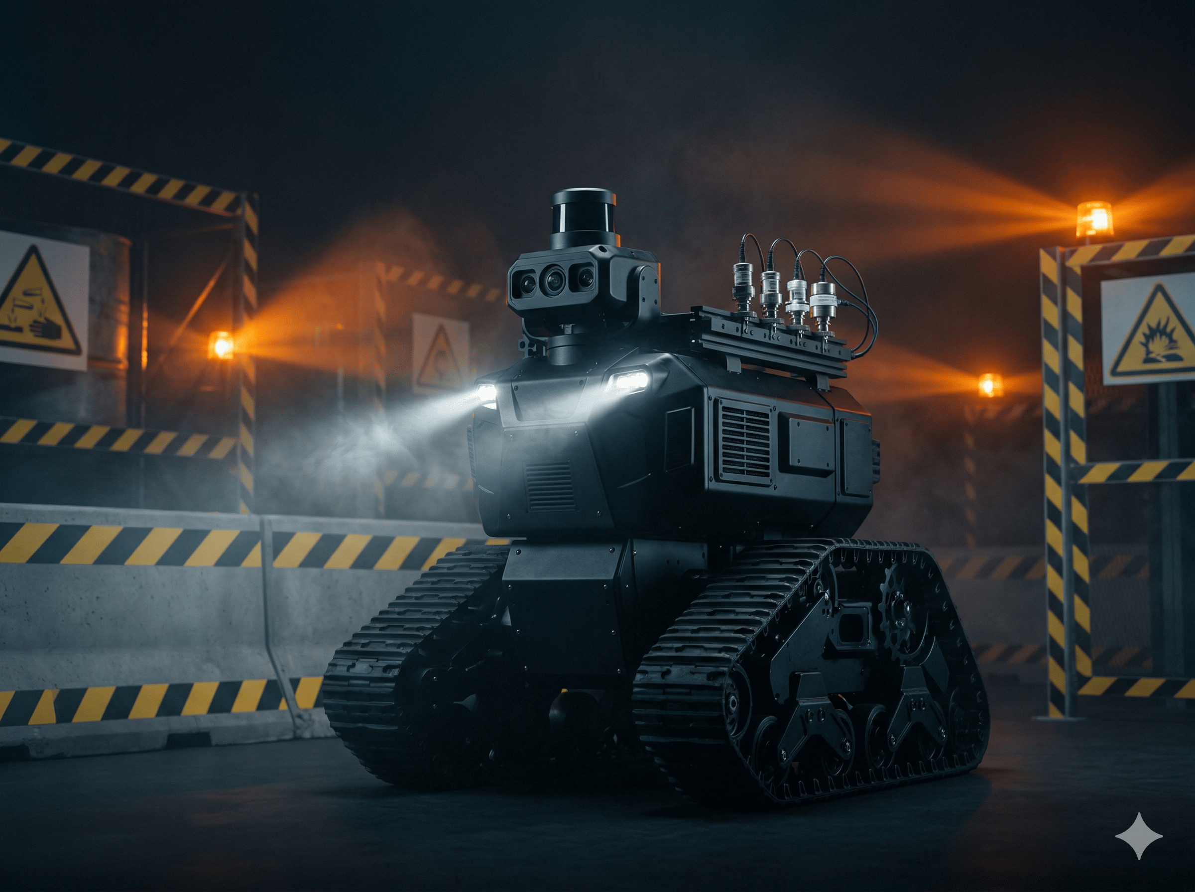 Autonomous robots collect visual, thermal, and environmental data in hazardous environments, providing first responders with safe, rapid situational awareness.
